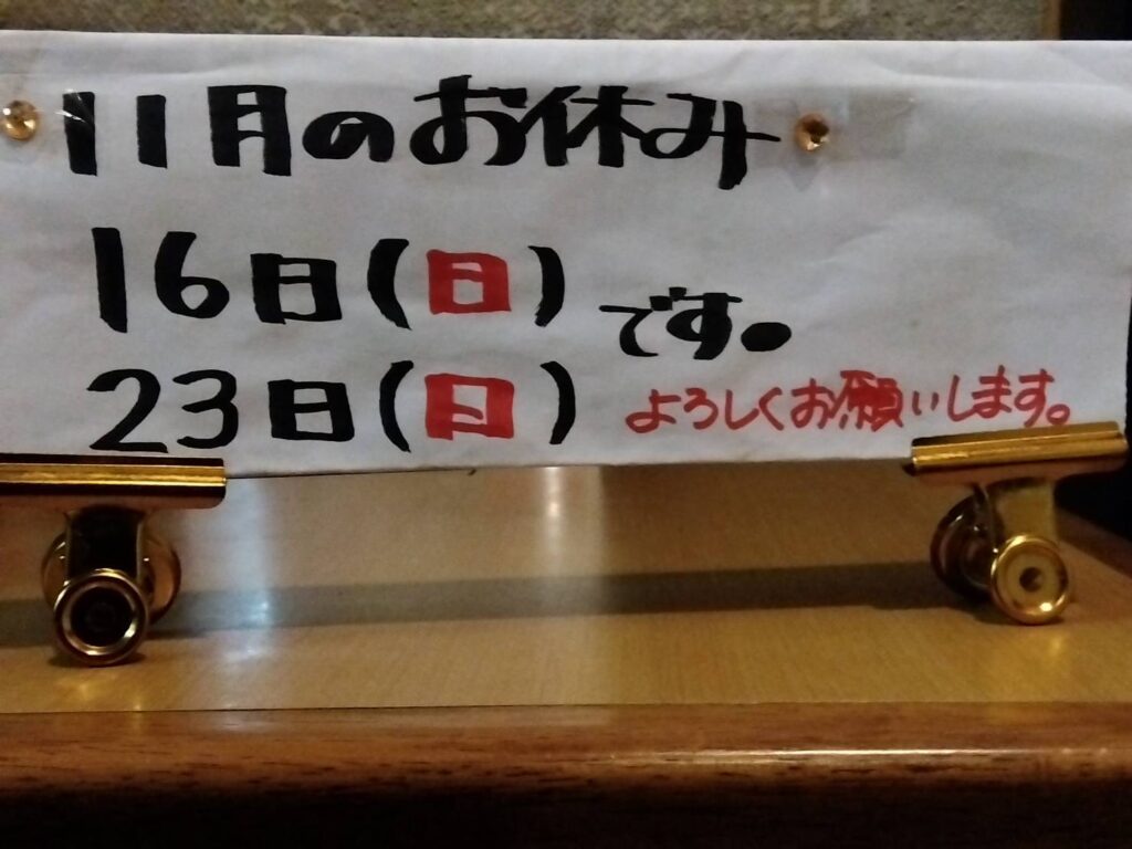 【2025年】11月のお休みについて 2025年11月4日 お知らせ コメント 2025年11月の全休日は、11月16日(日)11月23日(日) となります。 ご理解のほど、よろしくお願いいたします。 【2025年】10月のお休みについて コメントを残す コメントをキャンセルメールアドレスが公開されることはありません。 ※ が付いている欄は必須項目ですコメント ※ 名前 ※ メール ※ サイト 次回のコメントで使用するためブラウザーに自分の名前、メールアドレス、サイトを保存する。 上に表示された文字を入力してください。